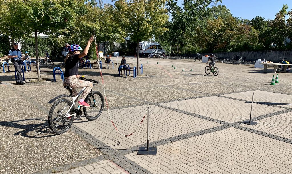 Im Rahmen des städtischen Ferienspaßangebotes hatten die Jugendverkehrsschule Rhein-Neckar und der Verein Bündnis für Demokratie und Toleranz e.V. Wiesloch zusammen mit der PfD zu einem Fahrradparcours eingeladen.